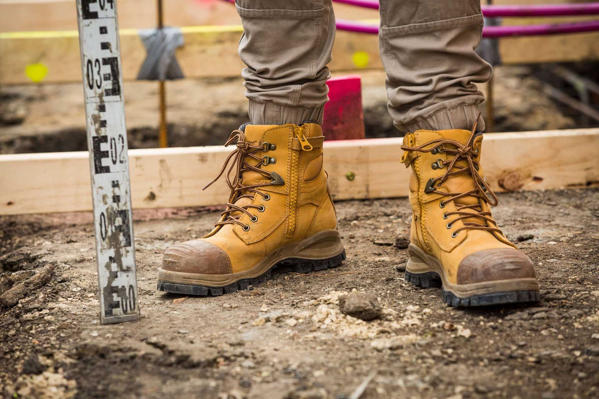 - Công trường xây dựng nên sử dụng giày bảo hộ có mũi thép, đế chống đâm xuyên và khả năng chống trơn trượt cao. Những tính năng này giúp bảo vệ chân khỏi các vật sắc nhọn hoặc va đập mạnh.