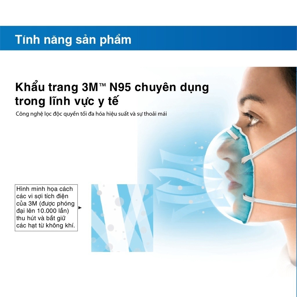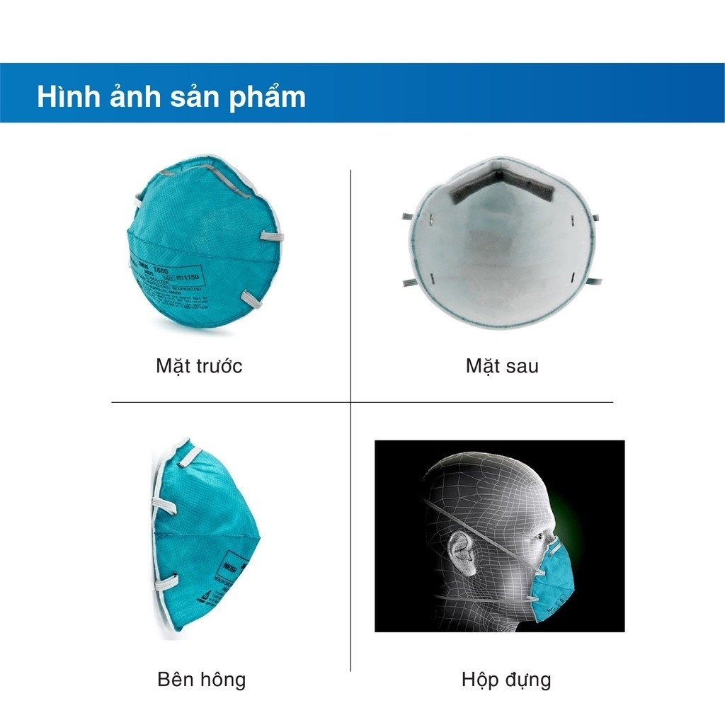 Khẩu trang 3M 1860 dùng trong y tế đạt chuẩn N95 chống giọt bắn, kháng khuẩn Khẩu trang chính hãng, Trang bị toàn diện