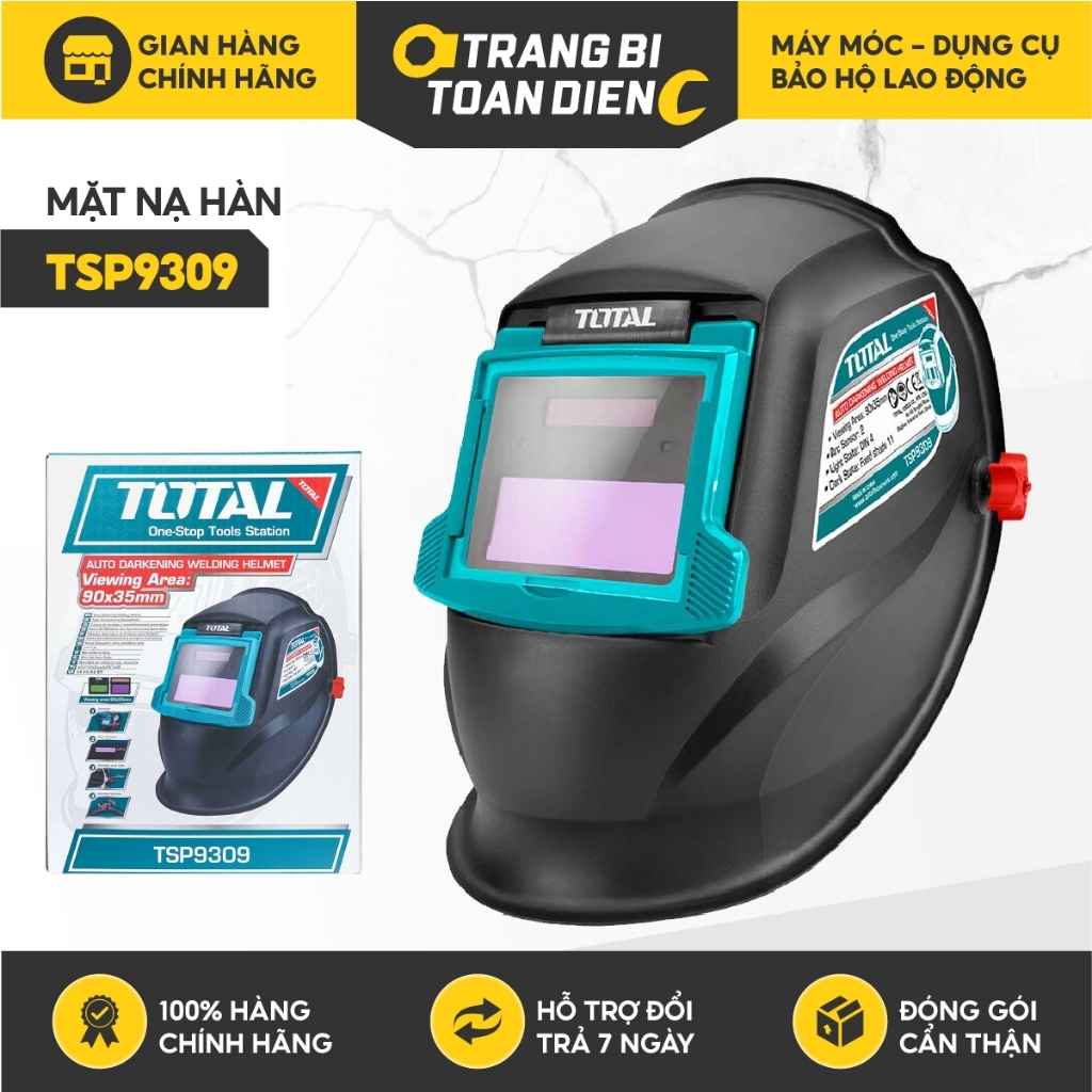 Mặt nạ hàn điện tử TOTAL TSP9309 bật tắt nguồn tự động vùng quan sát 90×35mm, kích thước vùng tối 110×90×9mm