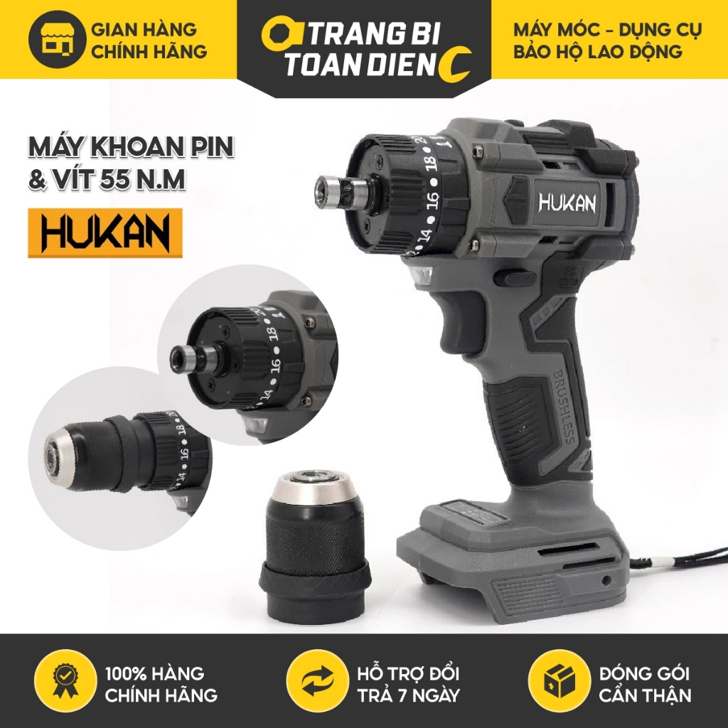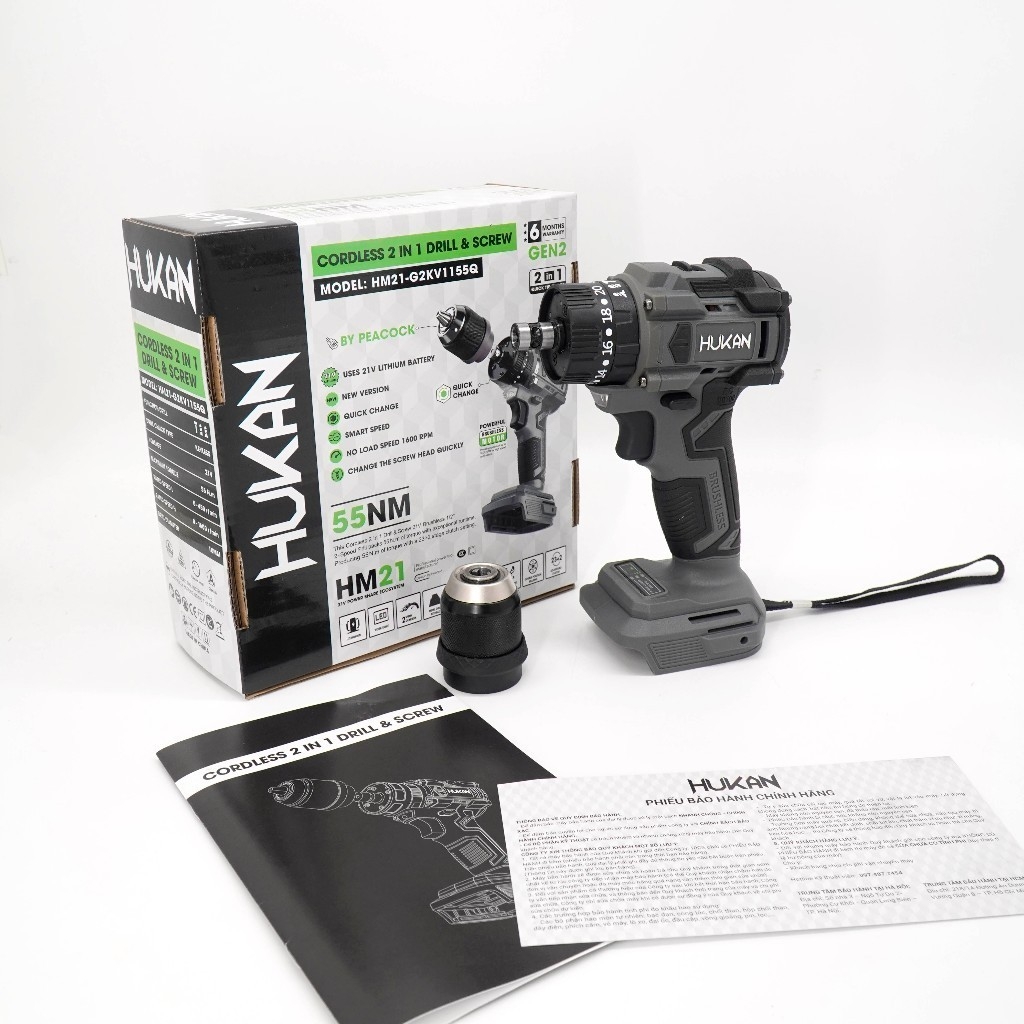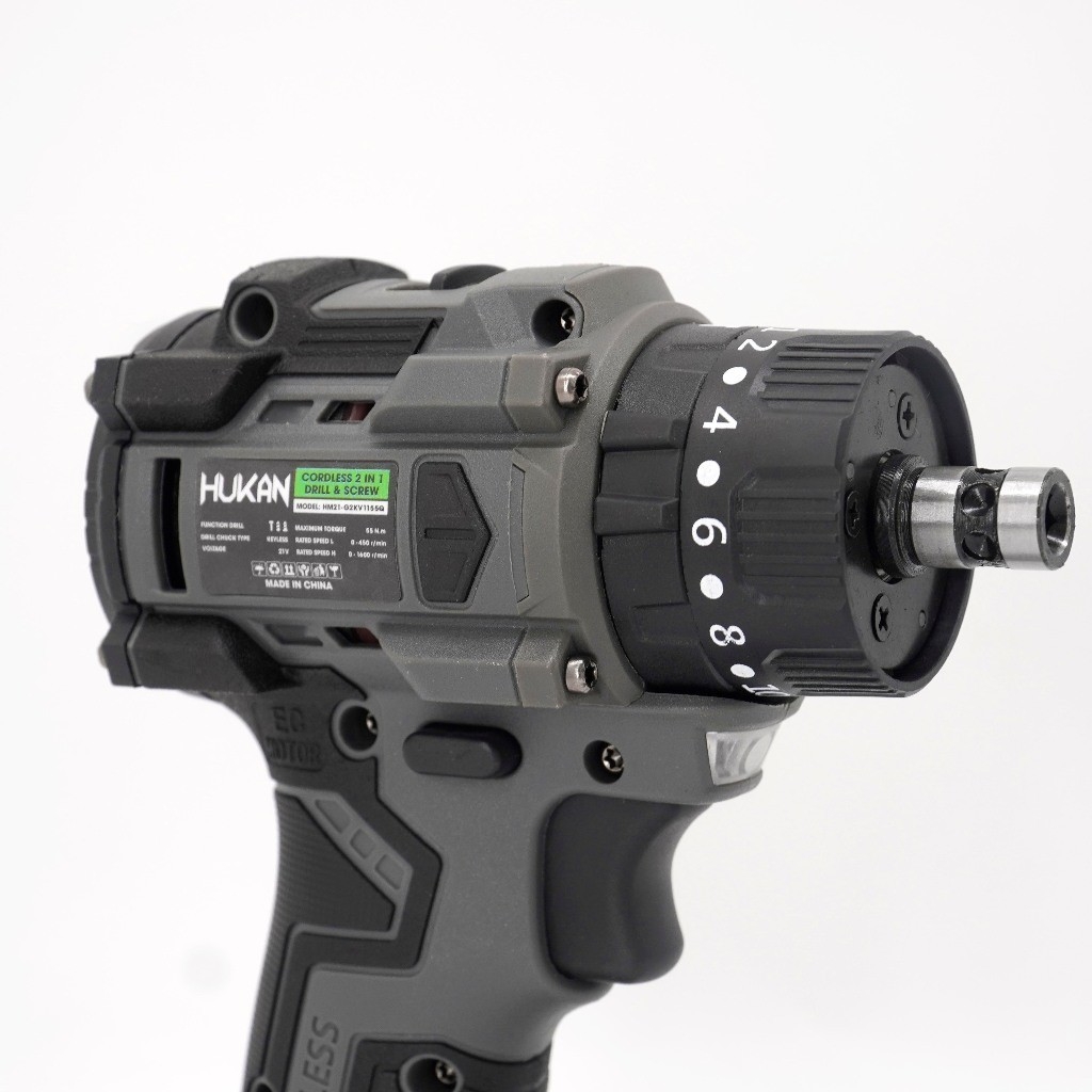 Thân máy khoan pin và vít HUKAN HM21-G2KV1155Q, Đầu kẹp 10mm, Lực siết 55Nm, Khoan pin 3 chức năng, Chưa pin & sạc