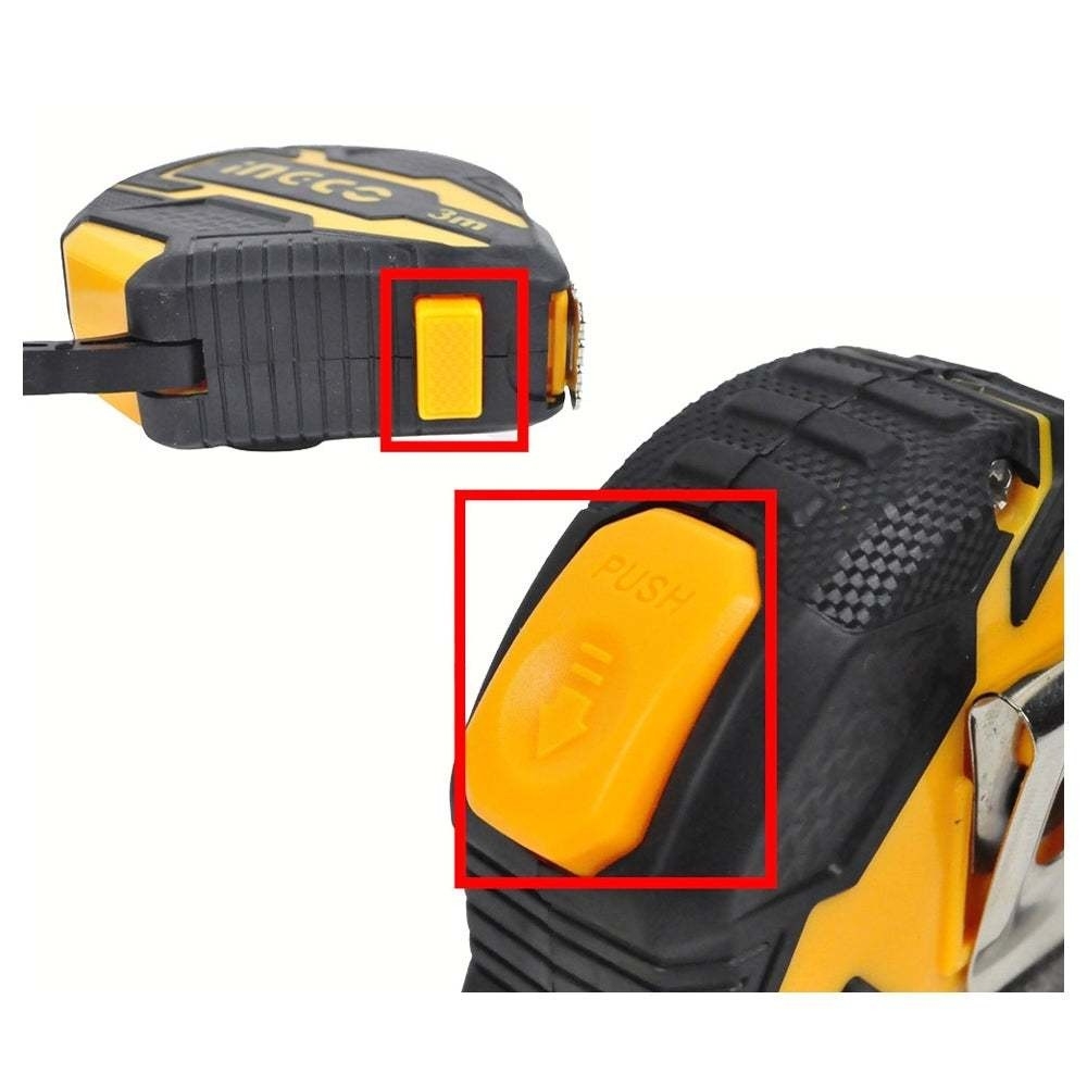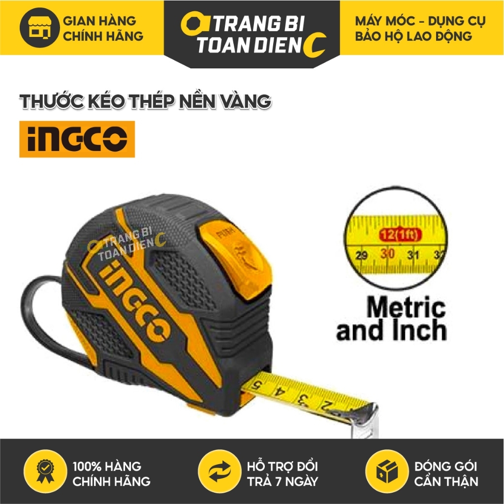 Thước cuộn thép nền vàng 3m, 5m, 8m INGCO HSMT08316, Chiều dài và chiều rộng tự khóa, hệ đo mét&inch, Trang bị toàn diện